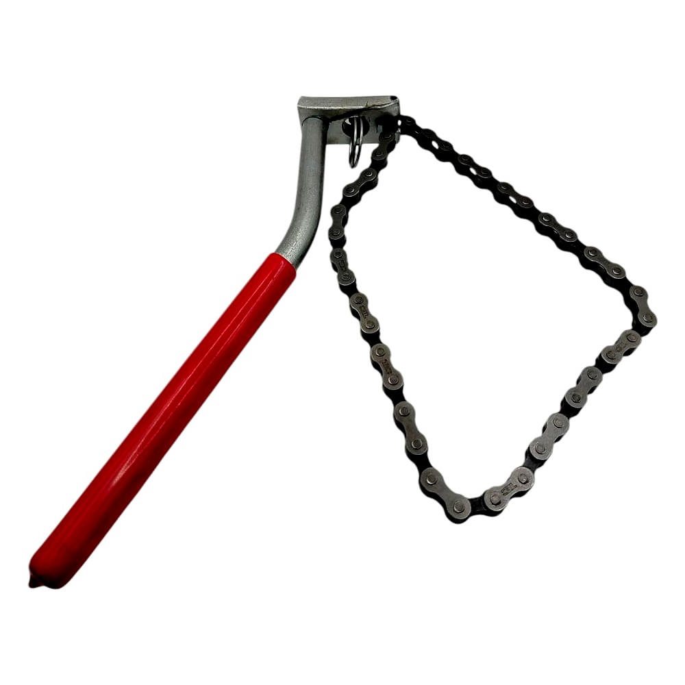 Ferramenta prática e universal para remoção de filtros de óleo. A Chave Saca Filtro com Corrente Regulável conta com dois elos ajustáveis, adaptando-se a diferentes tamanhos e diâmetros de filtros.