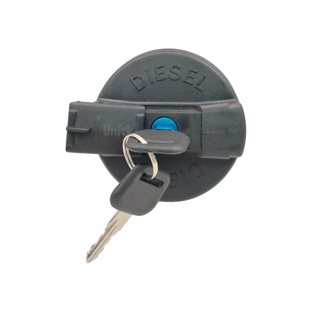 Tampa de combustível vedada para tanque com rosca interna, com chave. Compatível com Ford Cargo após 85, F 4000 de 72 a 99, e montadoras Agrale, Ford, Iveco, Scania, Volkswagen e Volvo.