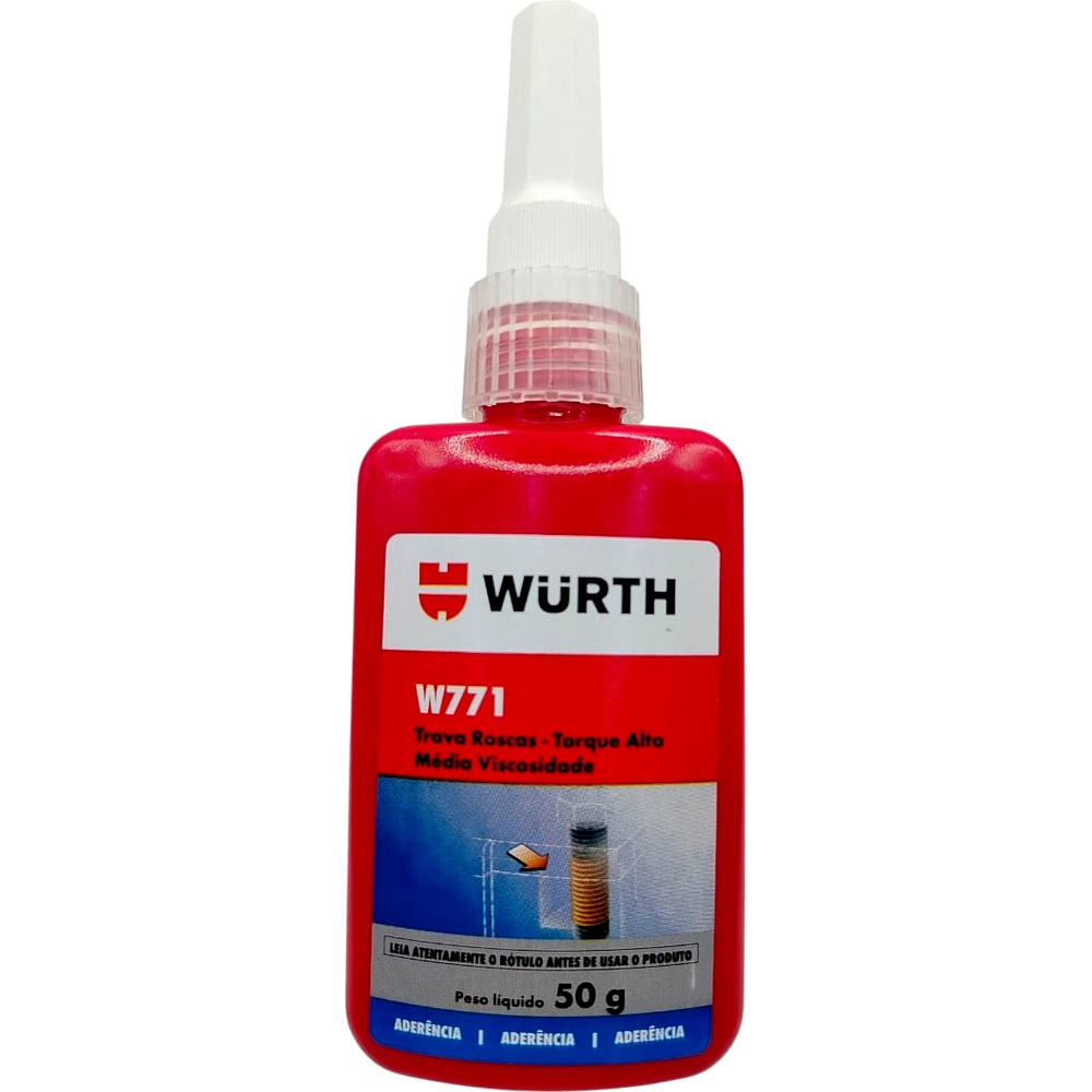 Trava rosca Wurth W777 com fixadores anaeróbicos de torque alto. Produto de uso profissional, indicado para travamento seguro de roscas e porcas em montagens que exigem alta resistência mecânica. Garante segurança, vedação e durabilidade, mesmo em ambientes com vibração constante.